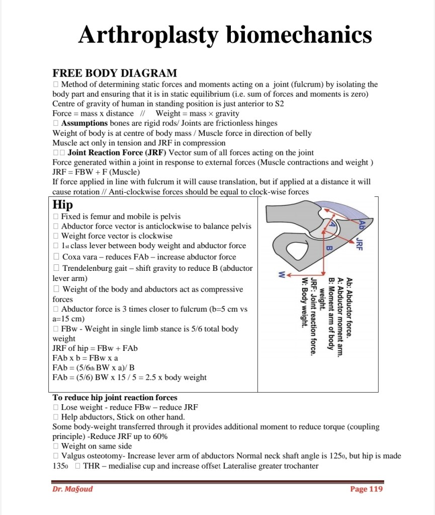 General biomechanics arthroplasty